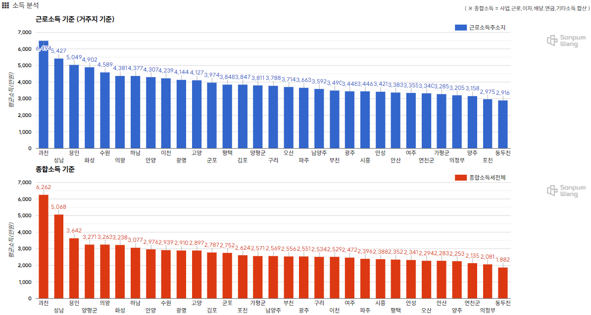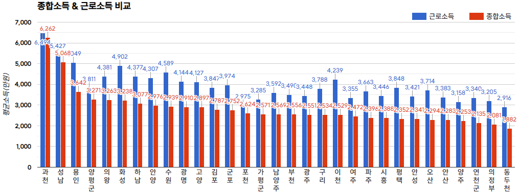 - 근로소득 기준 : 과천 > 성남 > 용인 > 화성 > 수원 > 의왕 > 하남 > 안양...